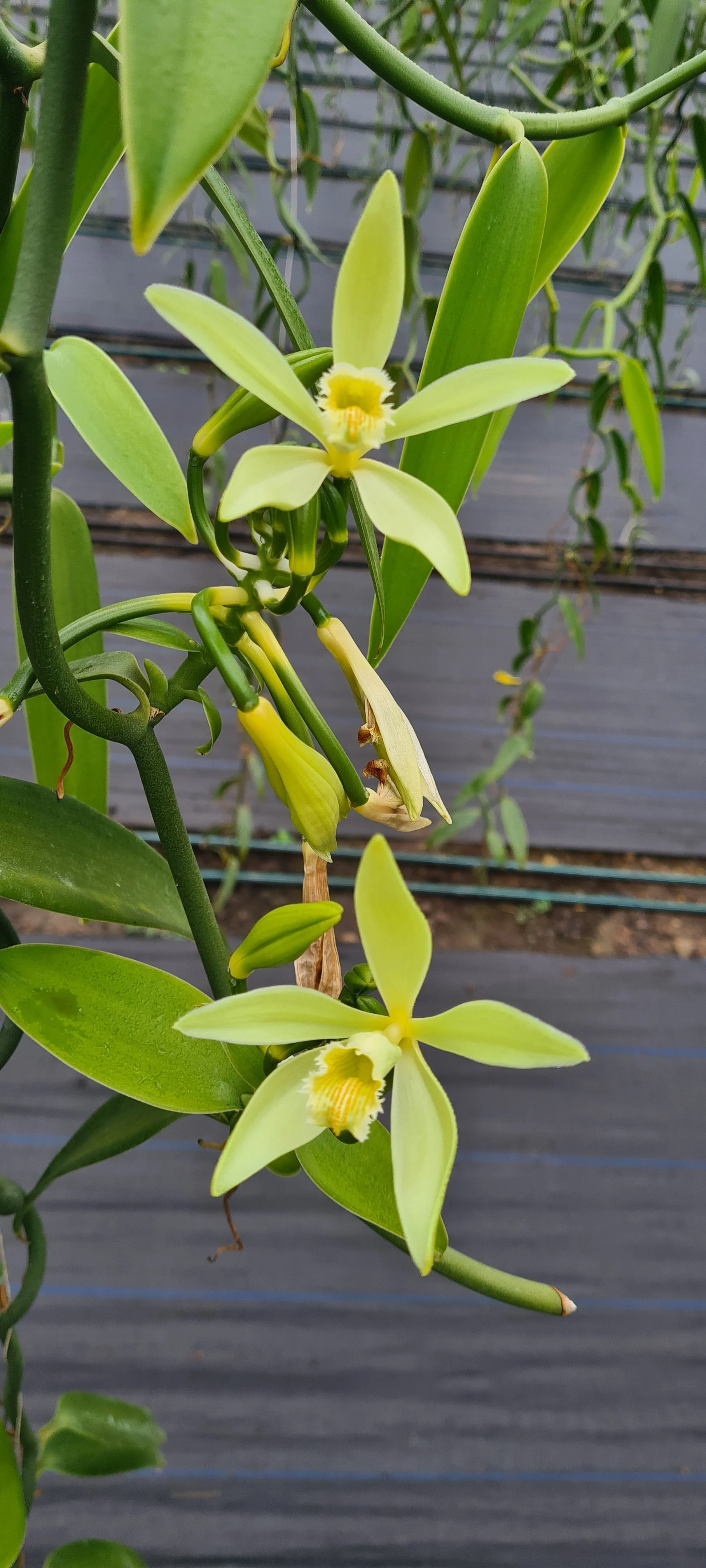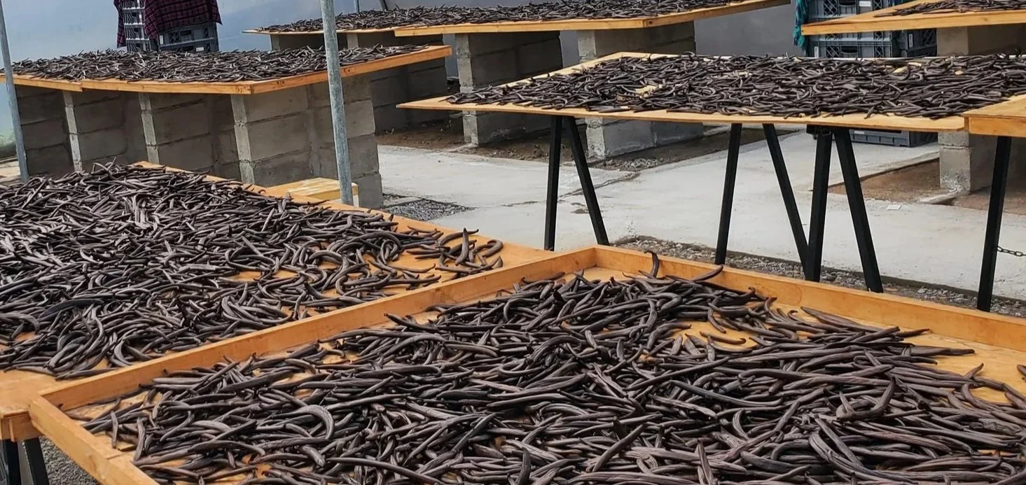 Nuestra vainilla se cultiva en un entorno húmedo y tropical donde la floración ocurre de forma natural y delicada. Cada vaina es resultado de un proceso paciente: desde la polinización manual hasta el curado lento que desarrolla su aroma profundo y envolvente.